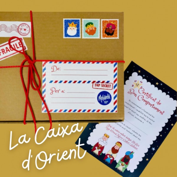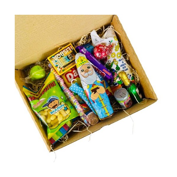 Una caja especial enviada por los Reyes Magos desde el Oriente que además de incluir un certificado de buen comportamiento personalizado está repleta de golosinas, snacks y chocolates.